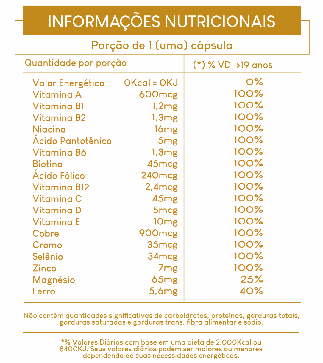 Zinco, Bisglicinato de Ferro, Pantotenato de Cálcio,