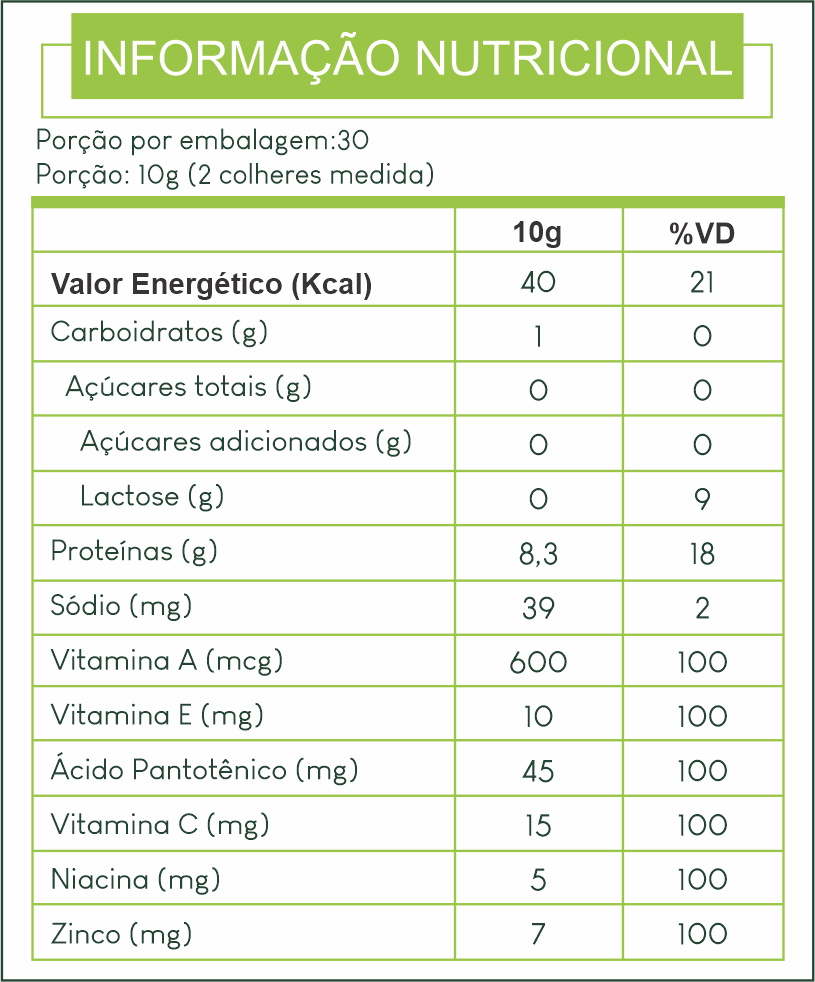 - Uso Adulto: Diluir 2 colheres-medida em 200ml de água ou a bebida de sua preferência. Consumir uma porção ao dia.
