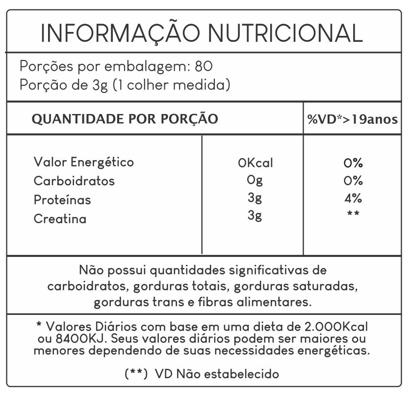 - Uso Adulto: Diluir 1 colher-medida (3g) em água ou líquido de sua preferência, ingerir antes do treino, uma vez ao dia.