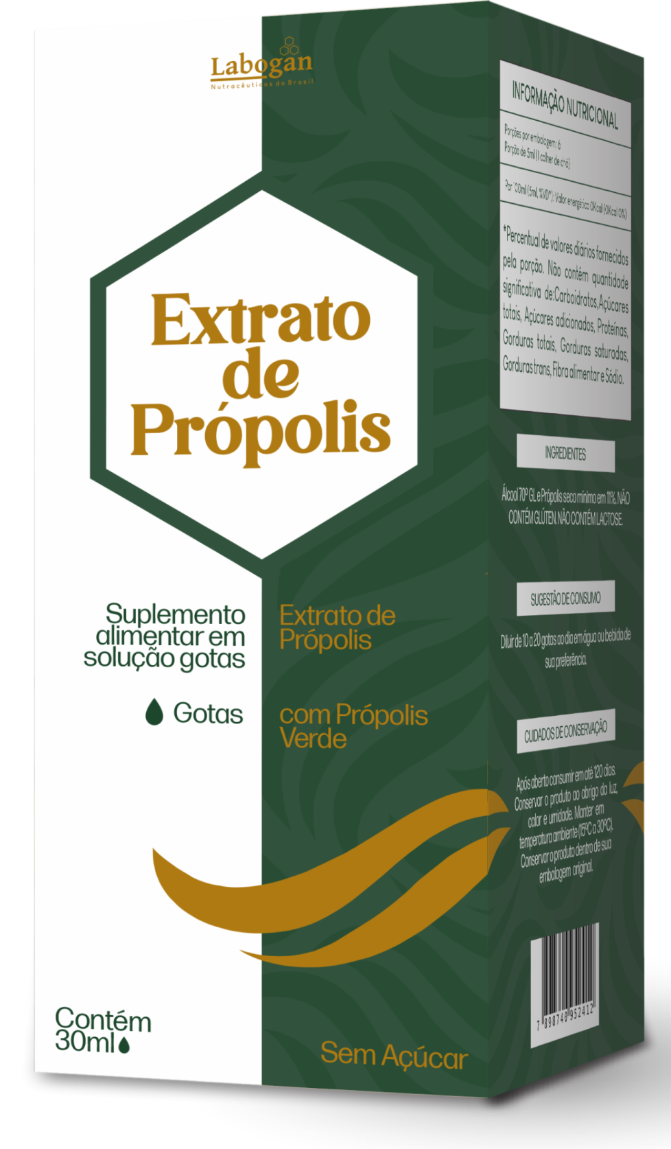 Álcool 70º GL e Própolis Seco mínimo em 11%.