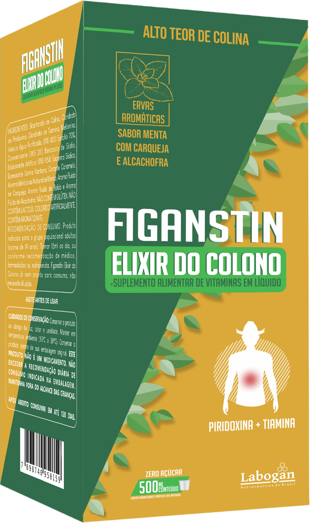 Veículo Água Purificada, (INS 420) Sorbitol 70%, Conservante (INS 211) Benzoato de Sódio, Edulcorante Artificial (INS 954) Sacarina Sódica, Espessante Goma Xantana, Corante Caramelo, Aroma Idêntico ao Natural de Menta e Aroma Fluído de Carqueja. Bitartarato de Colina, Cloridrato de Piridoxina e Cloridrato de Tiamina.