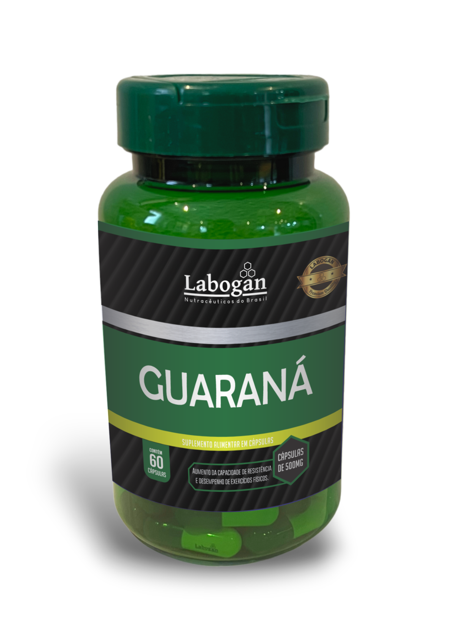 Guaraná em pó, Amido de Milho, Antiumectante Dióxido de Silício e Talco. Cápsula de Gelatina e Dióxido de Titânio.