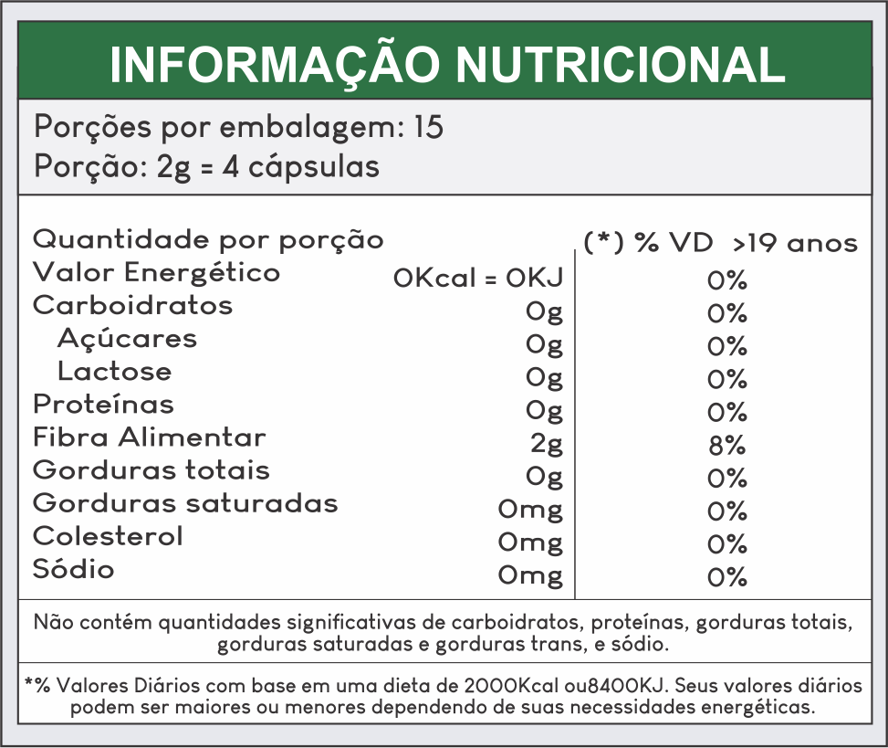 - Uso Adulto: Tomar 2 cápsulas, 2 vezes ao dia.
