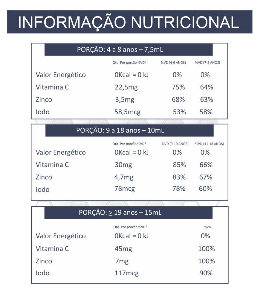 Mel, Ácido Ascórbico, Sulfato de Zinco, lodeto de Potássio,