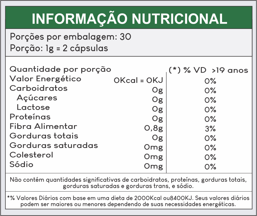 - Uso Adulto: Tomar 2 cápsulas ao dia.