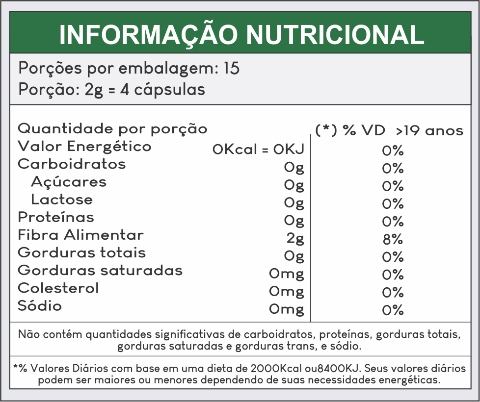 - Uso Adulto: Tomar 4 cápsulas ao dia.