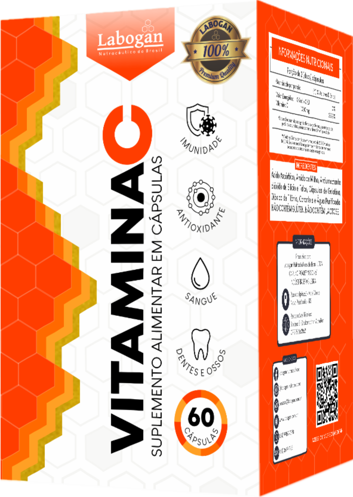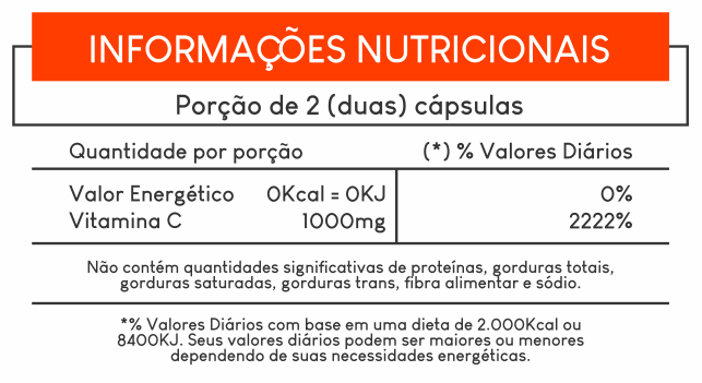 Ácido Ascórbico, Amido de Milho, Antiumectante dióxido de Silício e Talco, Cápsulas de Gelatina e Dióxido de Titânio.