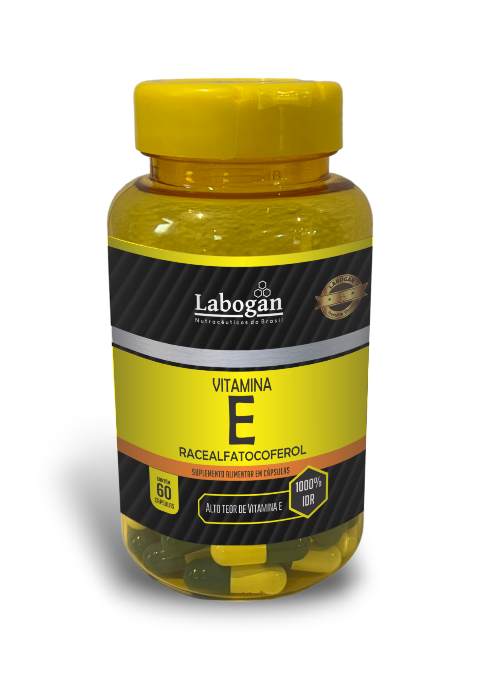 Acetato de Racealfatocoferol, Amido de Milho, Antiumectante Dióxido de Silício e Talco. Cápsula de Gelatina e Dióxido de Titânio.